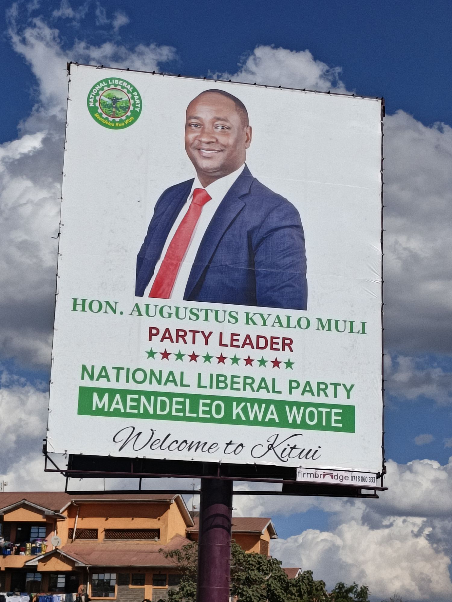 The National Liberal Party (NLP) has unveiled a massive billboard in Kitui Town bearing the image of its Party Leader, Hon. Augustus Kyalo Muli.